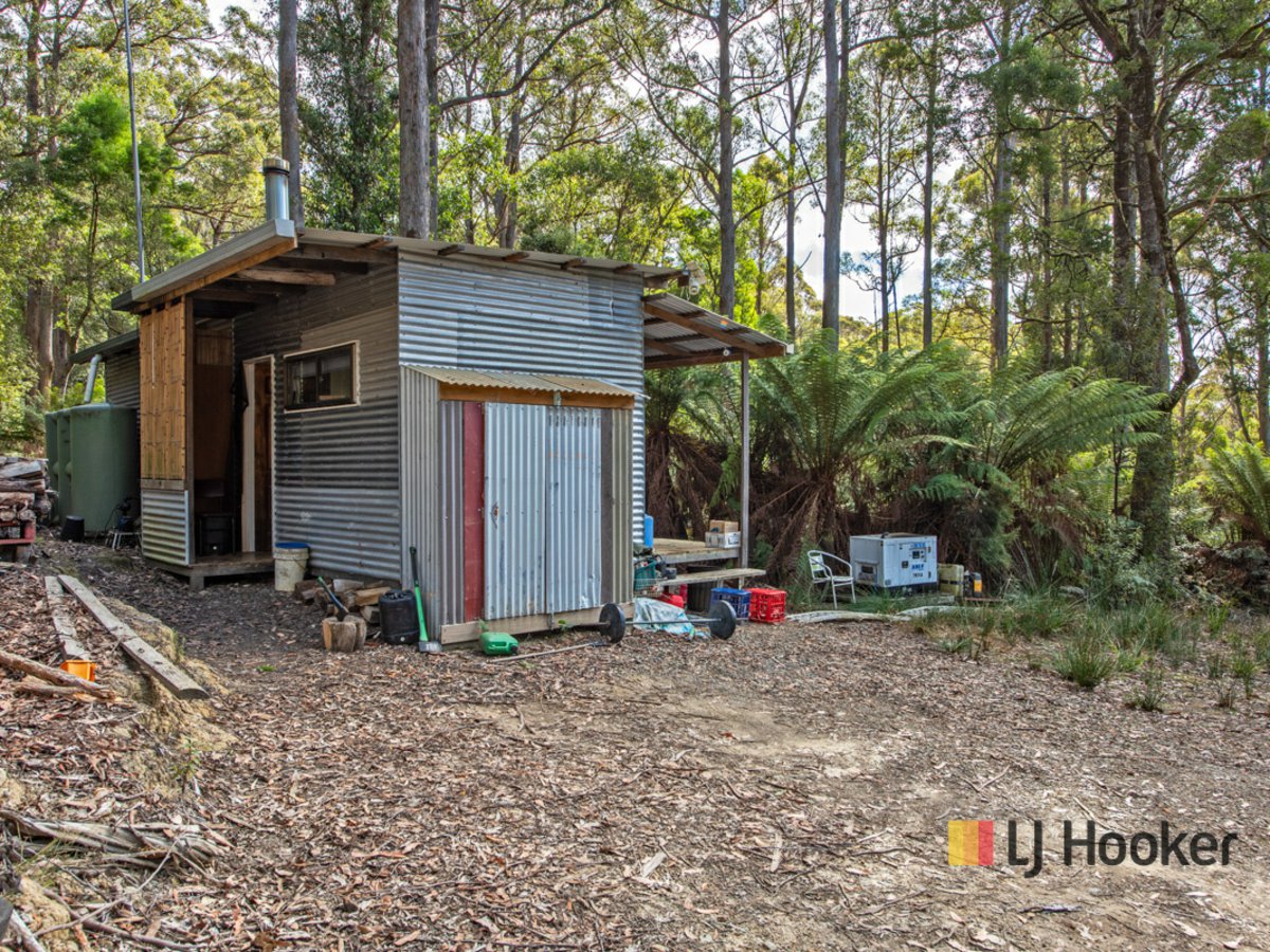 - Old growth forest including blackwood, Tas Oak and Myrtle just to name a few - Cleared area with potential building envelope - Relocatable Shed - Small water tank