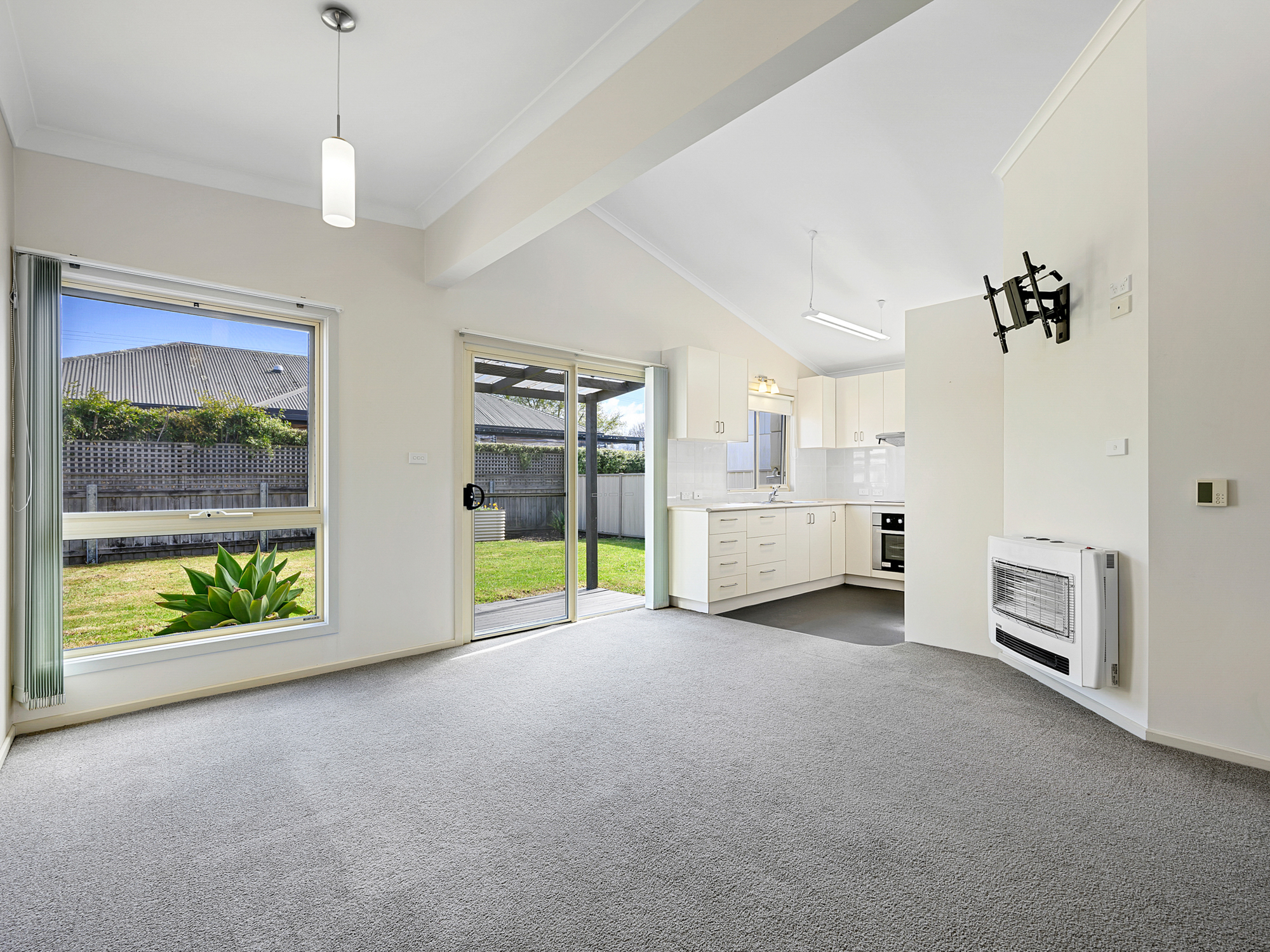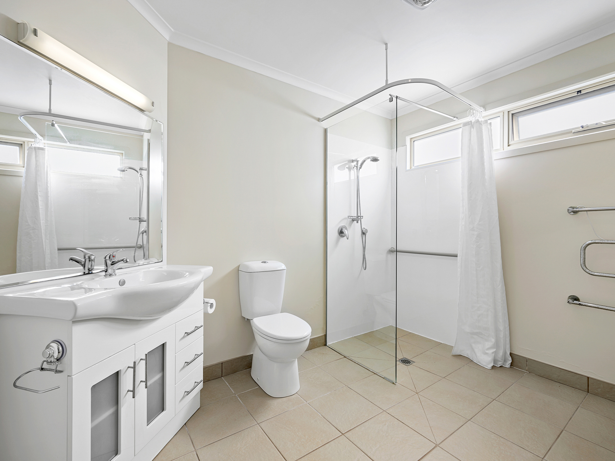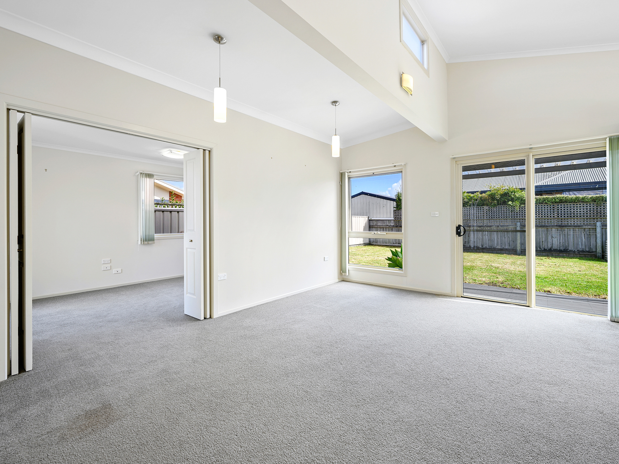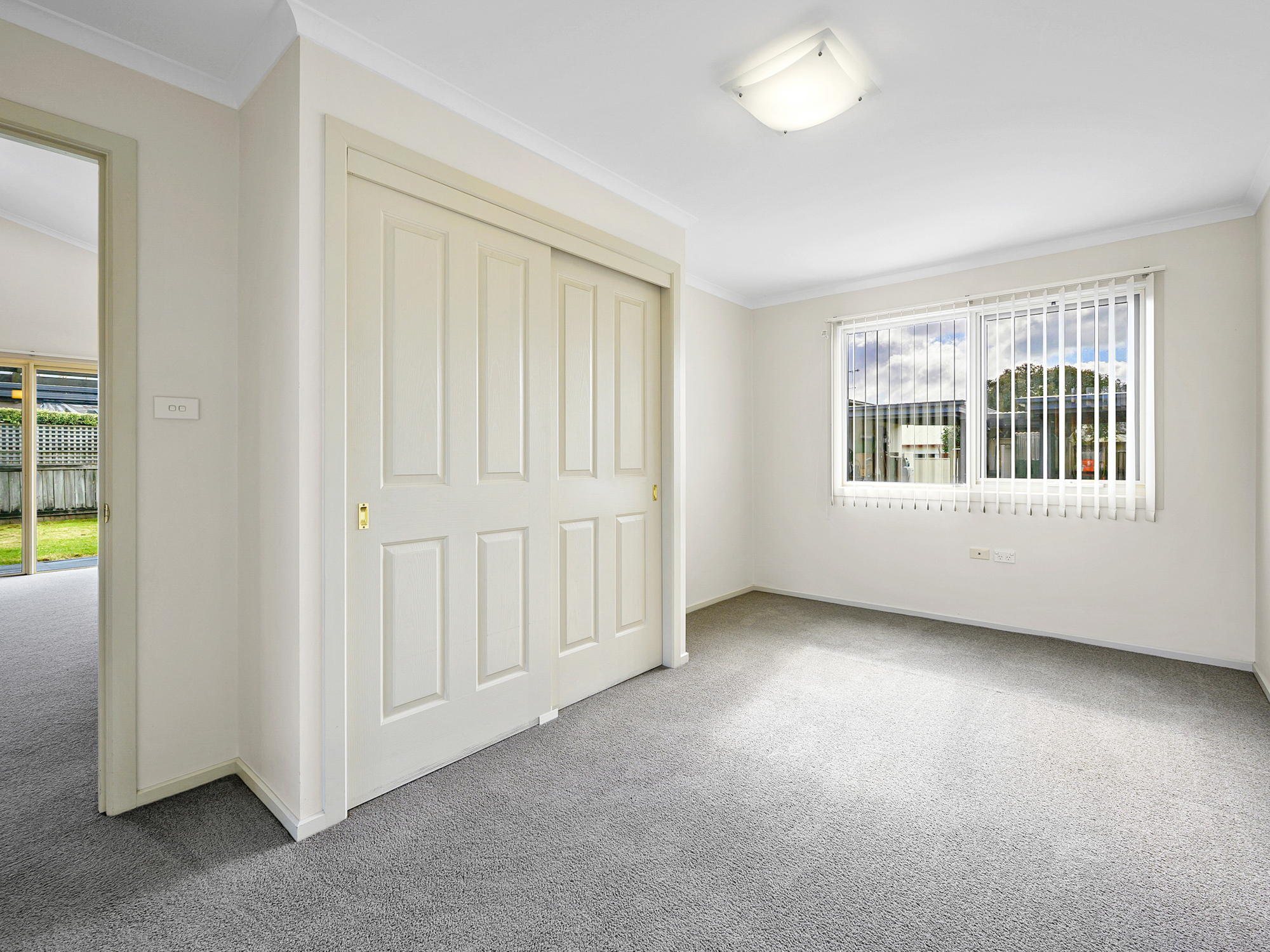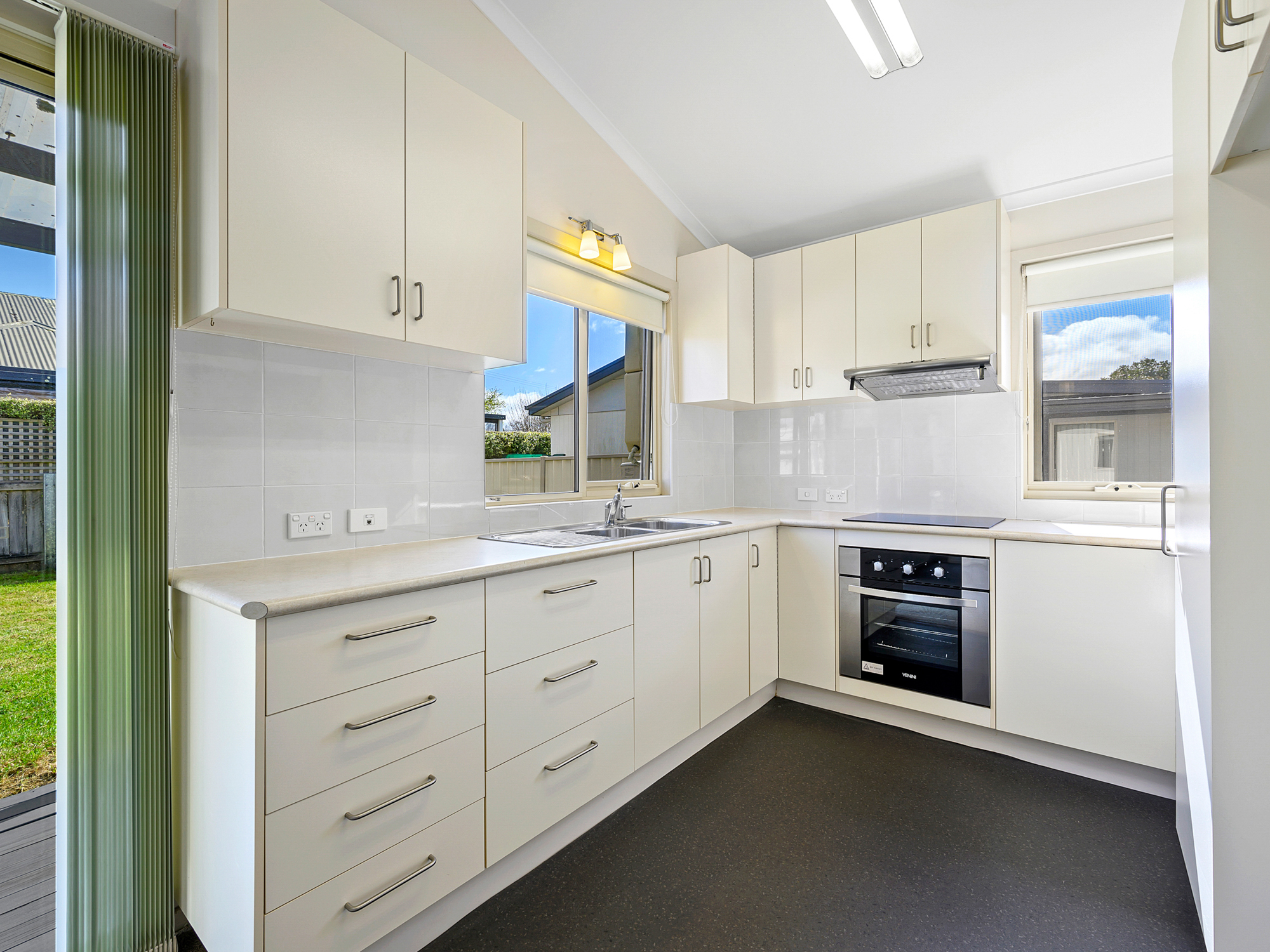 Modern light filled, sunny villa with two bedrooms available for someone to move in and add their personal touch. This villa is appealing to all ages with easy access & subtle built in features make it a rare find for those with extra mobility needs. Raked ceilings & plenty of windows through the living area create an inviting spacious space.