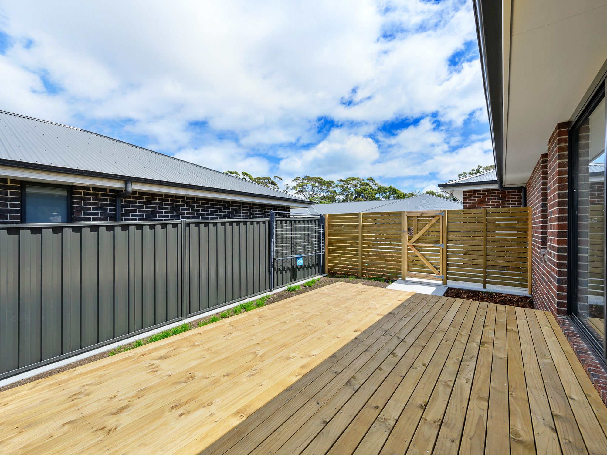 • Brick veneer exterior with double glazed windows for enduring quality and energy efficiency. • Open plan dining, lounge & kitchen spaces, creating a welcoming atmosphere for entertaining. • Bedrooms with built-in wardrobes, providing ample storage. • Well-appointed kitchen, complete with high-quality fixtures and fittings. • Single garage with internal access and electric roller doors, offering secure parking and ease of access. • Private patio/deck areas, extending your living space outdoors. • Exceptional energy efficiency with an average of 7 stars, ensuring a comfortable & sustainable living environment.